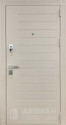Светлая входная дверь с отделкой из натурального дерева №24