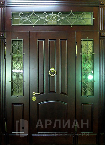 Большая дверь для загородного дома со стеклянными вставками №5
