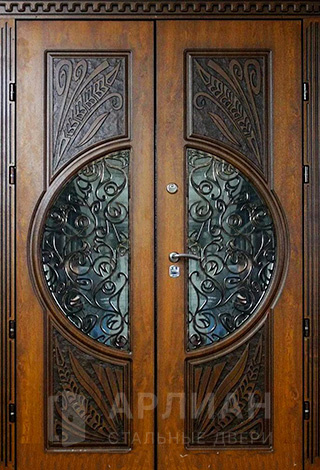 Арочная двустворчатая стальная дверь для загородного дома №125