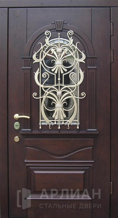 Двустворчатая дверь со стеклом и кованной решеткой №2