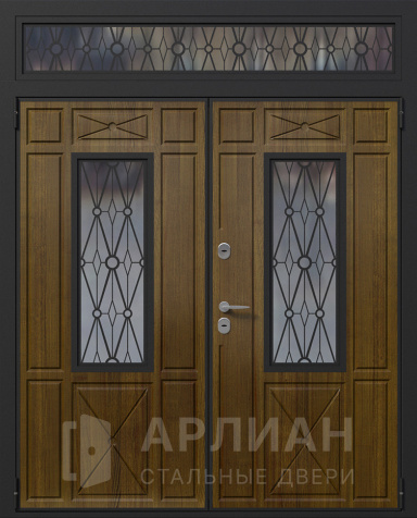 Двустворчатая дверь со стеклом и кованной решеткой №2