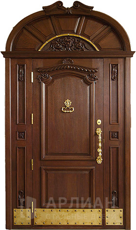 Металлическая входная дверь в коттедж с верхней фрамугой №10