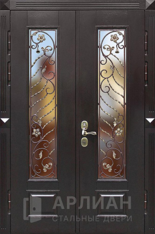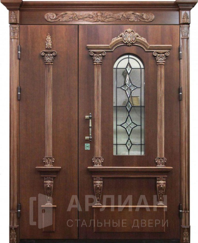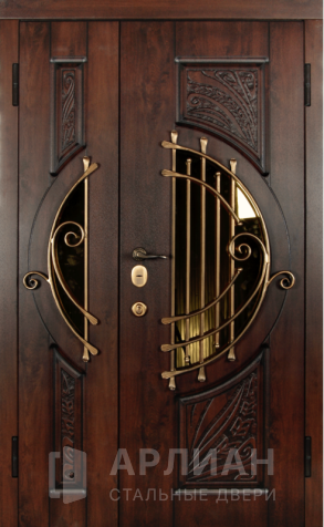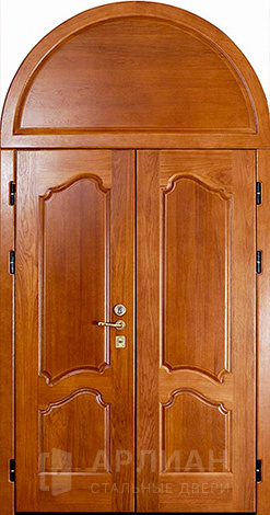 Арочная двустворчатая стальная дверь для загородного дома №125